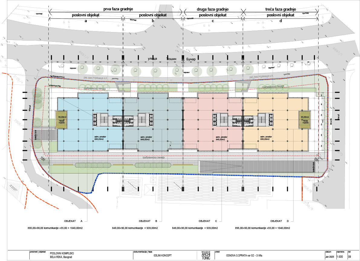 Планировка третьего этажа UОбщая площадь: 4303,00m² Здание A, первая фаза – 1134,00m²Здание B, первая фаза – 1017,50m²Здание C, первая фаза – 1017,50m²Здание D, вторая фаза – 1134,00m²